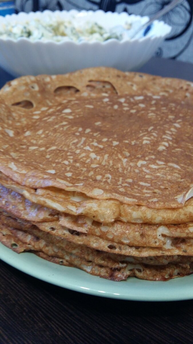 Сколько слёз было пролито над рецептом идеальных блинов, сколько их было выброшено и как были измотаны мои нервы, знает только мой муж, который собственно и был инициатором сия действий. Но навыручку мне пришла свекровь, и поделилась этим простым рецептом, по которому она почему то не готовит, странно... но сейчас не об этом. Так вот. Если вы хотите кружевные, тонкие и совершенно умопомрачительные блины, то ловите рецепт! Яйцо - 1 шт (если мелкие то 2 шт) Сахар - 2 ст ложки Мука - 150 - 160 гр (1 стакан с горкой) Сода - 1 ч ложка Вода - 1 стакан (кипяток) Кефир - 500 мл Взбиваем яйцо венчиком, добавляем сахар. Вливаем кефир, он должен быть комнатной температуры. Перемешиваем венчиком. Далее добавить муку. Теперь самое интересное! В стакане кипятка размешиваем чайную ложку соды. И вливаем в наше блинов тесто. Теперь даём тесту отдохнуть, минут 10. Обратите внимание, что тесто не должно быть слишком жидким или слишком густым. Всё! Теперь можно приступать к выпеканию. Сковорода должна