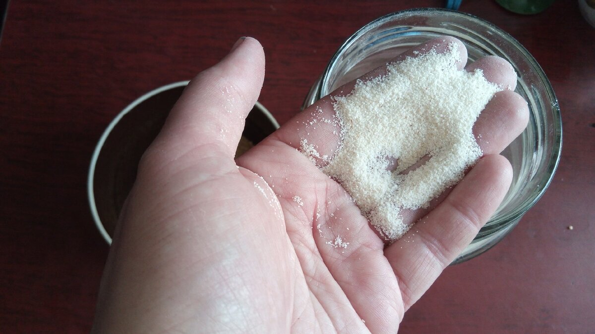 Потребуется небольшая и ненужная тара. Далее нужно взять 1 чайную ложку сахарной пудры и столько же борной кислоты в порошке. Затем нужно перемешать ингредиенты и добавить немного кипятка, снова размешать, чтобы получилась киселеобразная масса.