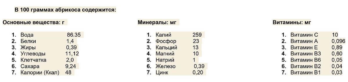 Калорийность абрикоса