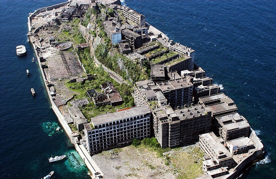 Речь пойдет о маленьком японском острове Ганкаджима, площадью в один квадратный километр, расположенном в Тихом океане. Долгое время остров никого не интересовал, потому что был весьма миниатюрным и фактически диким - обыкновенный безжизненный риф. Но в 1810 году местный феодал по имени Сага, исследуя свои владения, а остров Ганкаджима так же входил в их число, обнаружил на острове запасы угля. Остров стал быстро заселяться и расширяться. Вся вынутая пустая порода шла на строительство береговой линии. Но места для рабочих и служащих все равно не хватало, и потому остров рос в основном вверх, а не в ширь. Через десятки лет, благодаря многочисленным надстройкам и дымящим трубам печей отопления, остров стал похож на огромный непотопляемый линкор. Собственно название Ганкаджима, как раз и переводится - остров-линкор Квартиры с красивым видом из окна, были только у управляющего персонала, простые рабочие довольствовались лицезрением внутренних двориков, а то и просто жили в закрытых помещен