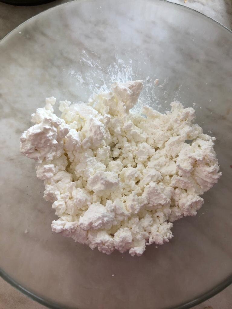 Творог размять вилкой (можно и руками). Добавить к нему пюре из картофеля, хорошенько перемешать.