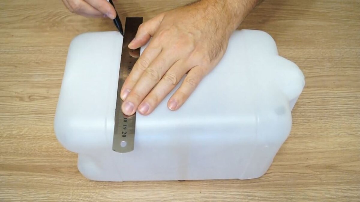 Добрый день! Если у Вас есть ненужная пластиковая канистра, то Вы можете сделать из нее удобный ящик для инструментов. Сейчас покажу, как это сделать. Берем самую обычную канистру. Отмечаем линии для разреза. По диагонали. Прорезаем канцелярским ножом. В итоге. должны получится две вот такие части: Сперва, сделаем ручку для нашего ящика. отмечаем ширину ручки. И отверстие, чтобы пролезала рука. Прорезаем. И проделываем тоже самое со второй частью канистры. Берем четыре зажима для пластиковых труб (Д-16). И сцепляем между собой. Размещаем на канистре и отмечаем место крепления. Проделываем отверстие и крепим. В зажимы устанавливаем два коротких куска полипропиленовой трубы. Теперь, нужно соединить части канистры спина к спине. Делаем отверстия и крепим или болтами или заклепками. Разрезаем резиновый обод для ручки и устанавливаем на место. С одной стороны расставляем по местам отвертки, плоскогубцы, рулетку. А так же футляр для саморезов. С другой стороны, можно положить шуруповерт с