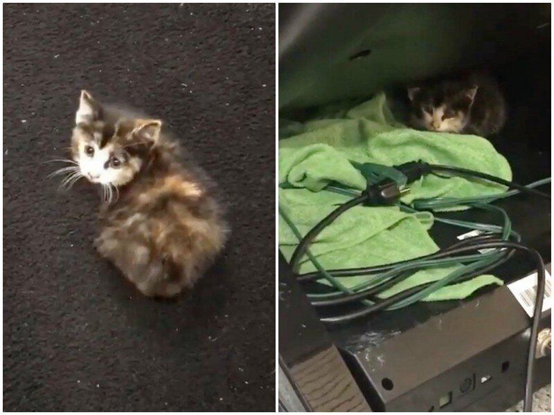 Рабочие одной из автомоек США встретились с маленьким котенком, который забежал к ним, прячась от сильного дождя на улице. Он был очень напуган, смотрел по сторонам и не знал, куда ему деться. Сотрудники не бросили котенка в беде! Они сразу же принесли ему угощения и связались с местным центром спасения животных, чтобы о малышке позаботились. Пока все ждали спасателей, котенок залез в одну из машин, и спрятался там под полотенце. Когда волонтер прибыл на место, кроха точно никуда не собиралась уходить и с особой осторожностью наблюдала за людьми. Эвелин (так звали волонтера), пыталась говорить с кошечкой, пытаясь всячески её успокоить - и это получилось! Малышка далась взять себя в руки, тогда её отнесли в машину и повезли домой. Волонтер взяла её на время, чтобы помочь восстановиться. Маленькой кошечке дали кличку - Зора. Она сначала очень боялась всей новой обстановки вокруг себя, но спустя всего пару часов, она уже начала играть и требовать к себе внимание. Сейчас Зора привыкает к н