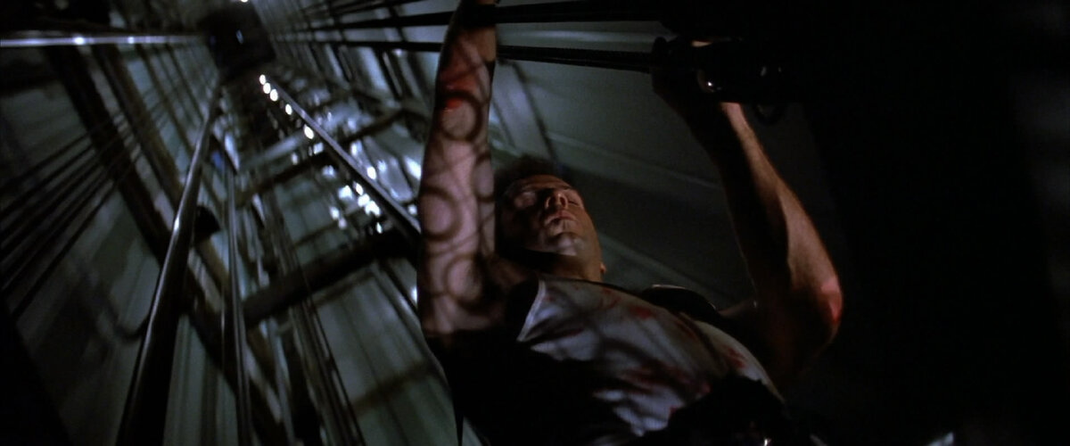 Джон Макклейн падающий в лифте! Эта сцена была снята по ошибке.