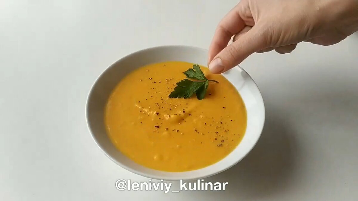Суп-пюре это лучший выход👍 Можно готовить из любых овощей, а наш помощник блендер всегда прикроет и ваш кроха не догадается из чего сварен суп 😉 Сегодня предлагаем вам один из вариантов таких всеми любимых супчиков. Чудесный суп-пюре из тыквы, такой яркий и нежный. Тыкву очищаем от семян и кожуры. Режем довольно крупными кусками. Кладем в кастрюльку и добавляем лук, морковь и картофель. Важно чтоб по объему тыква занимала столько же места, что и остальные овощи вместе взятые. Чтобы вкус тыквы превалировал. Овощи солим и заливаем водой. Много не добавляйте, просто чтоб овощи были покрыты, а то и меньше можно. Варим 20-25 минут. А далее измельчаем блендером. Вжууух-вжиииих и готово! Сливки сделают такой супец по-настоящему кремовым и сытным. Так что добавьте 100-150 мл и хорошо перемешайте. Мы использовали 20%, но подойдут и другой жирности. При необходимости разводим суп водой до необходимой консистенции. Наше солнце на тарелке готово! Надеемся, рецептик скрасит пасмурный ден