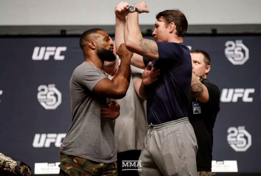 Staredown- смутить пристальным взглядом. Неотъемлемой частью любого бойцовского поединка является битва взглядов. Стердауны созданы для привлечения максимального интереса зрителей к поединками. Во время этой процедуры бойцы становятся очень близко друг к другу и пристально смотрят в глаза друг другу. Иногда какой-нибудь боец не выдерживает нагрузки и тогда может случиться потасовка. К вашему фниманию небольшая подборка дуэлей.
