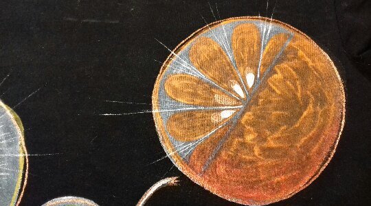 Футболка с росписью акриловыми красками для моей несравненно Сестры с большими фруктами.