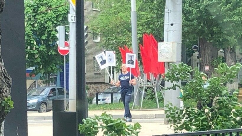 Сегодня, 9 Мая, когда в городах России из-за эпидемии коронавируса отменены массовые шествия «Бессмертного полка», житель Саратова устроил аналогичную одиночную акцию. На гражданина обратил внимание читатель, приславший фото ИА «Свободные новости». Очевидец запечатлел, как мужчина идет по полупустому скверу на улице Рахова сразу с тремя портретами участников войны в руках. Ранее власти призывали саратовцев принимать участие в онлайн-аналоге «Бессмертного полка», публикуя в соцсетях фото родственников - участников Великой Отечественной войны. Также жителей призывали выставлять фотографии воинов победы в окна или на балконы. При этом накануне председатель правительства области Александр Стрелюхин подчеркивал, что сегодня саратовцы могут, соблюдая меры противоэпидемической безопасности, посетить мемориалы и захоронения солдат. Полицию чиновник попросил «дружески» отнестись сегодня к вышедшим из дома гражданам.