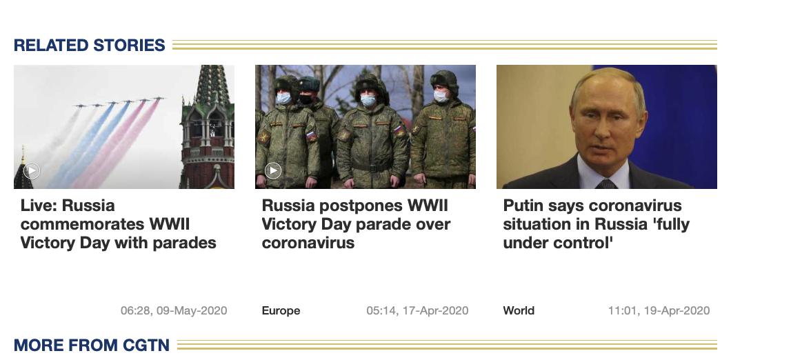 Президент Владимир Путин призвал россиян держаться вместе в субботу, когда страна отмечает 75-ю годовщину окончания Второй мировой войны, поскольку она по-прежнему находится в изоляции из-за коронавируса. "Мы знаем и твердо верим, что мы непобедимы, когда стоим вместе", - сказал Путин в телеобращении после того, как планы проведения грандиозного военного парада в День Победы на Красной площади пришлось отложить из-за пандемии. - Наши ветераны сражались не на жизнь, а на смерть. И мы всегда будем равны их единству и выносливости", - сказал Путин. В этом году были запланированы грандиозные торжества по случаю годовщины, когда Путин в сопровождении мировых лидеров возглавлял шествие военной техники и 15 000 военнослужащих, проходивших по Красной площади. Но поскольку коронавирус распространился по всему миру и в конечном итоге поразил Россию, в прошлом месяце Кремль признал, что тор