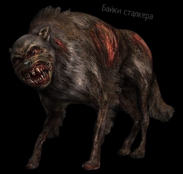 Подходи сталкер, моя информация может тебе пригодиться. Новичку и легенде не помешает ценная информация о мутантах. Доставай консервы с батоном и присаживайся к костру При взгляде на внешность псевдособаки весьма сомнительным кажется утверждение, что она имеет происхождение от волка. Настолько сильно изменена форма морды, что до сих пор продолжаются споры о том, является ли псевдособака мутацией известного нам вида животных — Волка, или же произошла как отдельный вид. Покрыта редкой шерстью по всему телу. На теле видны повреждения, разной степени давности. Это результат многочисленных стычек с себе подобными — псевдособаки очень агрессивны. Строго говоря, от волка в псевдособаке осталось немного. Больше всего изменилась голова: круглая, с огромными, но не сильно выступающими челюстями, вооружёнными многочисленными громадными зубами, растущими всю жизнь животного. При взгляде вспоминается более или менее похожая порода собаки — бульдог. Также в облике её присутствует нечто антропоморф
