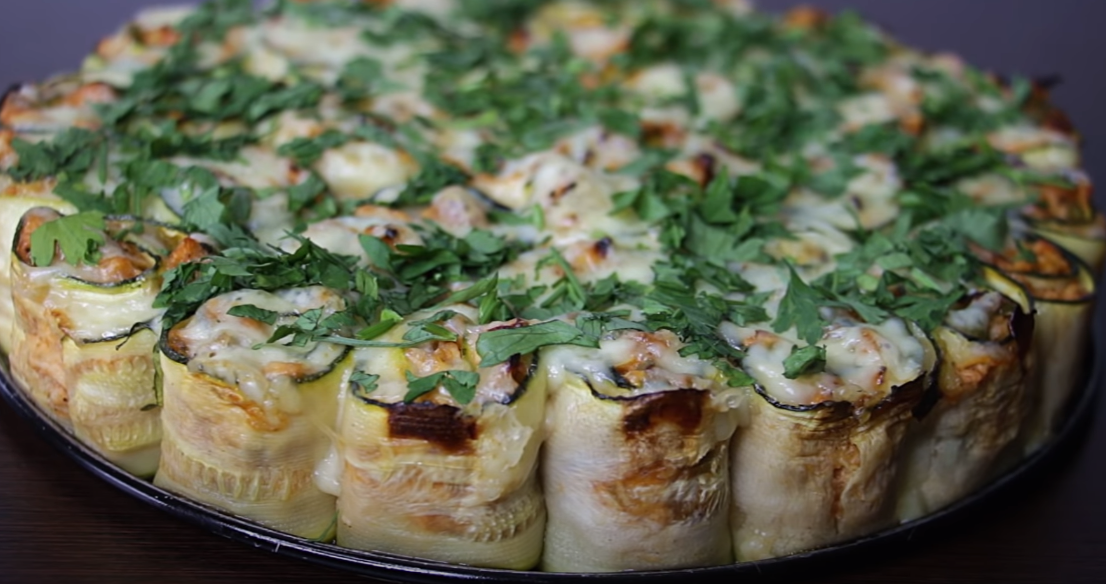 Здравствуйте дорогие читатели канала Незнайка на кухне. Сегодня вашему вниманию предлагаем рецепт вкусного и оригинального блюда. Нам понадобятся продукты 4 цукини среднего размера. Одна отварная грудинка курицы. Один болгарский перец если будет желтый или красный ещё красивее будет выглядеть закуска. Около 200 гр. натертого твердого сыра. Одна луковица и 3-4 зубчика чеснока. 100-150 гр. кетчупа или лечо. 1 ч. ложка соли 1ст. ложка паприки. 1\2 ч. ложки молотого черного перца. Приготовление начнем с начинки. Мелко нарезаем куриную грудку и кладем в приготовленную посуду в которой будем смешивать начинку. Мелко нарезаем болгарский перец что бы начинка получилась однородной. Лук также нарезаем мелкими кубиками 0.5-1 см. и добавляем в нашу посуду. Перемешиваем все и добавляем половину количества сыра. Приправляем перцем. Добавляем паприку. Добавляем соль. Смешиваем все. Добавляем чеснок. Выливаем кетчуп или лечо и хорошо перемешиваем. до однородной массы. После приготовления н
