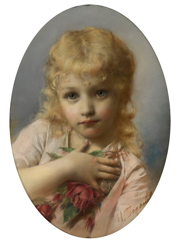 В Санкт-Петербурге на месте гибели императора Александра II был построен храм Спаса на Крови: После революции храм долгое время был закрыт для широкой публики, его открыли после реставрации только в 1997 году. Мы с мужем посетили этот храм несколько лет назад, когда гостили в Питере. Внутри храм украшен интересными мозаиками, 16 из которых созданы по эскизам художника Николая Корнильевича Бодаревского. Н.К.Бодаревский (1850-1921) родился в Одессе в дворянской семье. Художественное образование получил в Петербургской академии художеств. При жизни он прославился как портретист. В наше время он почти забыт, если бы не мозаики в храме Спаса на Крови я бы тоже не узнала о художнике Бодаревском. Бодаревский часто изображал детей, "прогрессивные" дореволюционные критики писали, что его детские портреты слишком слащавые, даже дети крестьян выглядят на них красивыми и счастливыми, видимо поэтому картины художника редко встречаются в наших знаменитых художественных музеях, а его имя мало извест