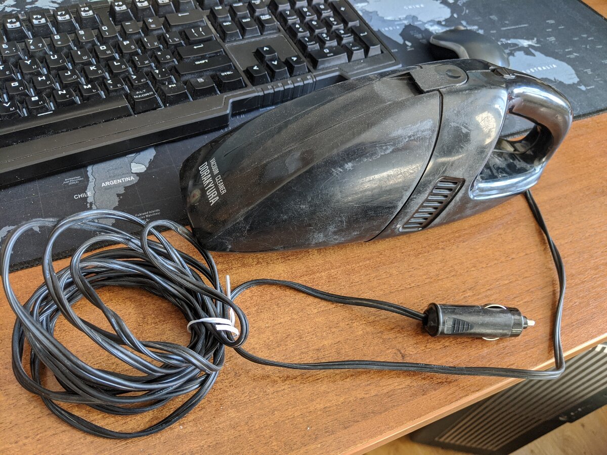 Есть у меня вот такой автомобильный пылесос. Вот только провод не нравится. При хранении он постоянно мешается, да и пылесосить с ним не очень удобно. Также иногда хотелось бы пылесосить его вне автомобиля, куда обычный пылесос подтащить сложно (к премеру — на шкафу). Плюс ко всему, он постоянно пропускал пыль мимо фильтра. Подозрение пало на резинку этого самого фильтра, которая от старости задубела. В итоге я проклеил шуткой по контуру, чтобы фильтр прижимался плотнее. Уже имея опыт создания адаптеров для шуруповертов, распечатал держатель аккумулятора Makita. Просверлил 4 отверстия в корпусе под винты, и одно большое отверстие под шнур. Старый шнур отрезал, и провода обжал обычным 6,3-мм разъемами (самые распространенные в автомобилях, они же используются на клемнике Makita). На клей посадил 4 гайки внутри корпусе, чтобы держатель аккумулятора можно было прикрутить к корпусу. После сборки получилась вот такая конструкция. Правда аккумулятор использовал 14,4В. В полностью заряженом
