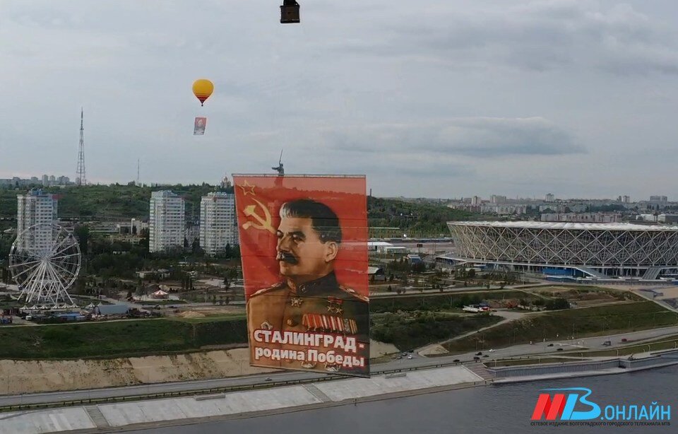 Над Волгоградом (Сталинградом) на празднично оформленных воздушных шарах пролетели 10-метровые портреты Сталина, Жукова и плакат «Родина-Мать зовёт!». Стартовали аэростаты 8 мая 2020 года в 18 часов 40 минут из посёлка Царицын под Волгоградом, затем проплыли над самым центром города-героя, Волгоградским мостом, и приземлились в Волго-Ахтубинской пойме недалеко от Лебяжьей Поляны.