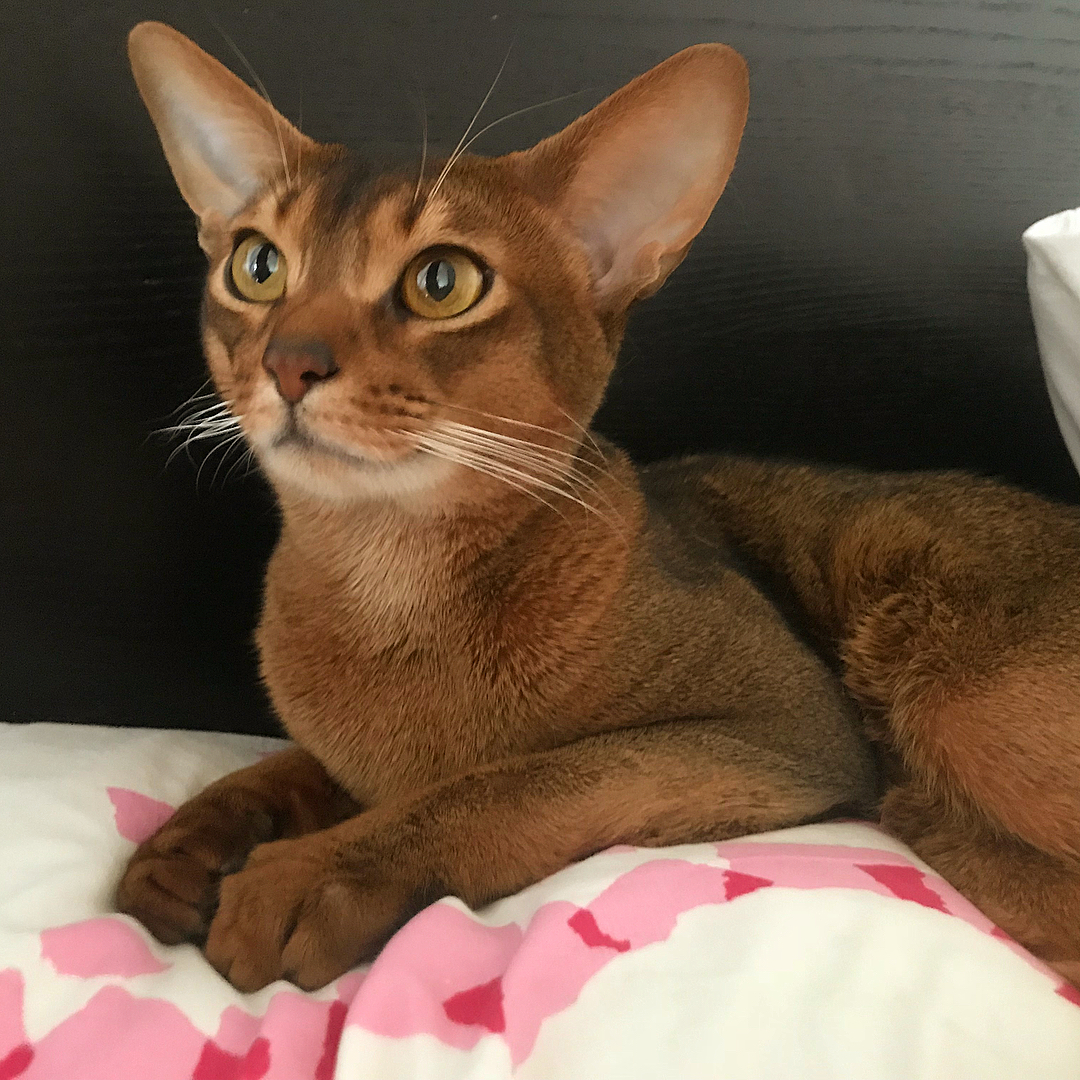 Да, кстати, с нами, с абиссинцами, не все так просто. Дело в том, что нас разделяют на два типа/ветви/вида/линии (называйте как хотите, для простоты я буду говорить «тип»): американский и европейский. И мы довольно разные. В чем разница? Американцы более худые и элегантные, европейцы, наоборот, более плотные и мускулистые. У американцев большие уши, у европейцев уши заметно меньше. Огромные насыщенные миндалевидные глаза, яркие окрасы, это все про американцев. У европейцев породные признаки выражены меньше.
