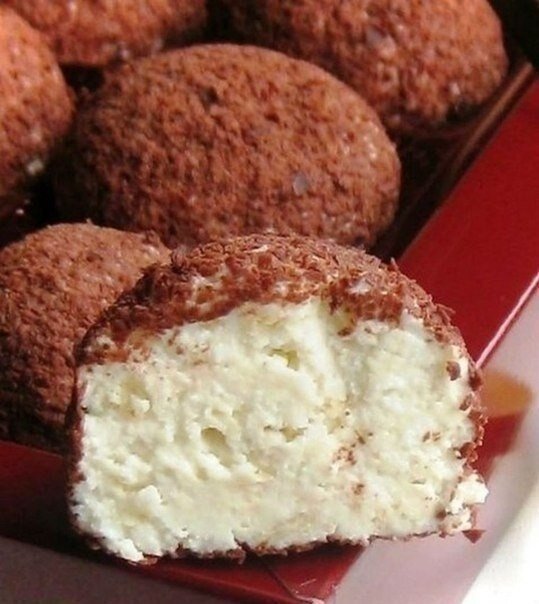 4.Когда шоколад начнет постепенно застывать, можно обвалять в какао и украсить орехом. Затем на