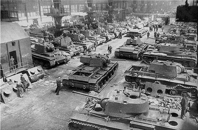 Сборочный цех танков КВ-1 Челябинского Кировского завода. Бригада "Черные ножи".