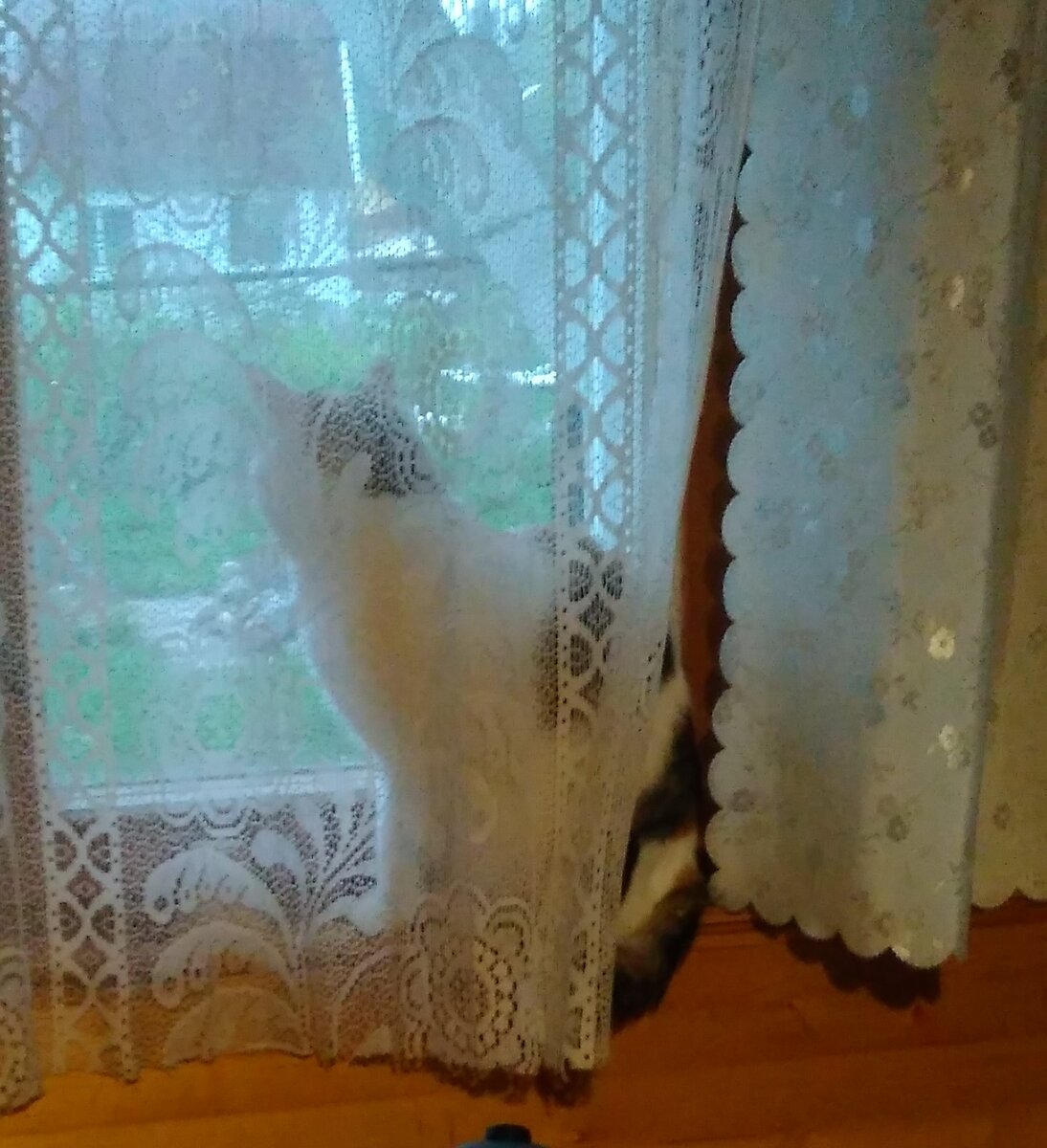 Сегодня моей обожаемой кошке Соне исполнилось десять лет! Видимо Соня на свой праздник позвала гостей, потому что утром долго сидела на подоконнике и кого-то все высматривала И как положено на праздник подтянулись гости :))) Два соседских кота. Один серый, пушистый с белой грудкой и второй - ярко-рыжий пушистый :)) Серый к нам ходит уже неделю, но он настолько скромен что я никак не могу его сфотографировать. Он как только увидит меня, сразу прячется под дом или убегает, а рыжий очень контактный! Ласковый до безумия!!! Не знаю пока чей он, но видно что хозяйский, ухоженный, чистый и абсолютно ручной! Подошел ко мне знакомиться, дался погладить. На ощупь худоват и на животике прощупываются колтуны небольшие. И голодный до чертиков. Теперь у нас есть свой собственный Рыжик:))) Видимо Рыжики решили осчастливить своим наличием большинство кошатников :))) Он кстати откликается на имя Рыжик. Если завтра придет попробую ради эксперимента позвать его другим именем, ну например Васькой. Посмо