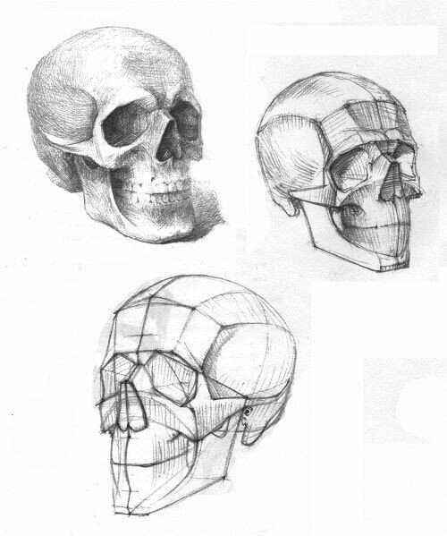 Как по мне нет ничего сложнее рисования головы, я часто не понимала, что именно нужно делать и с чего все таки начинать её построение. Изначально конечно, все таки нужно изучить череп, понять какие кости как соединяются и как крепяться к ним мышцы. Это очень важно только после того как вы поймёте какая мышца за что отвечает, вы сможете придать лицу эмоции и прийти к более реалистичному рисунку. ОБРУБОВКА ГОЛОВЫ Обрубовка – это рисунок или гипсовая фигура человеческой головы, разбитая на множество плоскостей. В каких-то базовых уроках и книгах для начинающих я её не видела. В основном она встречается в учебниках по академическому рисунки. По моему мнению именно обрубовка помогает понять отдельное положение деталей на лице и её видение в целом. Отдельно выделяют обрубовку лица, обрубовку носа и других его частей. Начинающие художники рисуют ее для понимания особенностей и закономерностей строения головы человека. Не понимая внутреннего строения чего-либо, сложно изобразить его внешние