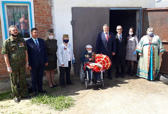 В г. Вольске Саратовской области продолжают чествовать ветеранов Великой Отечественной войны и тружеников тыла. Официальная делегация чиновников и служащих 8 мая посетила 96-летнего Василия Романова. Глава района Виталий Матвеев поблагодарил фронтовика за Великую Победу, вручил бытовую технику и продуктовый набор. К поздравлениям и вручению подарков присоединились председатель совета ветеранов Ольга Шавыкина, сотрудник женской колонии и лесхоза, где перед выходом на пенсию трудился ветеран. Романов родился и вырос в селе Юловая Маза Вольского района. На фронт ушел в 42-м, защищал блокадный Ленинград. Победу встретил в Праге, награжден орденами и медалями. В августе 59-го во время работы в колхозе «Боевик» Черкасского района потерял ногу, является инвалидом II группы. Управление культуры сделало фронтовику музыкальный подарок, исполнив композиции военных лет. Ветеран поблагодарил за помощь и внимание и спел популярную песню военных лет «На полянке». Как рассказали порталу «Вольск.ру»