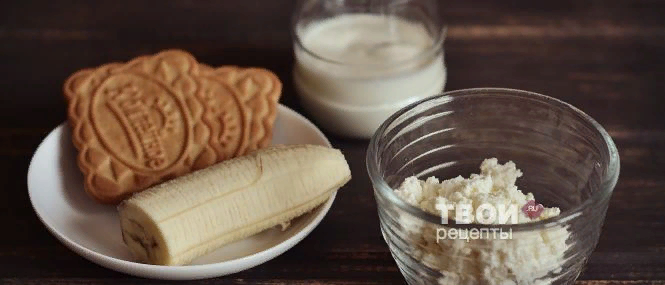 Ингредиенты Творог 100 г Бананы 1 шт Песочное печенье 2 шт Йогурт 4 ст.л Как приготовить "Творожный десерт с печеньем и бананом" 1.Для приготовления десерта нам понадобятся следующие ингредиенты - творог, печенье, натуральный йогурт, банан. 2.Возьмите посуду, в которой будете подавать десерт. Положите на дно 2 ложки йогурта и половину нормы творога. 3.Далее кладем банан, порезанный кружками. 4.Сверху крошим печенье. Повторяем все шаги еще раз. Рецепт "Творожный десерт с печеньем и бананом" готов, приятного аппетита ;)