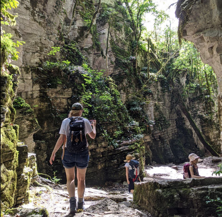 Сколько я про него читала! Сколько я представляла, как мы наконец туда доберемся! Но каждый раз что-то мешало. То дождь начнется. То приедем поздно для такого дальнего путешествия, то младшая дочь начнет капризничать, и мы сворачиваемся. Если честно, я так до конца и не поняла, как до него добираться. Ясно было только одно, на своем легковом автомобиле нам путь заказан. До Мокрого каньона Псахо доезжали с большим трудом. А дальше, говорят, дорога только для джипов плюс надо через речку проезжать. Поэтому Сухой каньон вечно откладывали – не любим мы пользоваться услугами местных гидов. Сейчас мы активно ищем место, где в будущем будем строить дом, и, как я писала ранее, очень понравились нам окрестности Галицыно и Красной Воли. Приезжаем, гуляем, осматриваемся, примеряем на себя. И тут в очередной вылазке выяснилось, что от Красной Воли до Сухого каньона рукой подать. Чем мы и воспользовались. Итак. Доезжаете до села Красная Воля. Оставляете машину в конце Виноградной улицы. Если тра