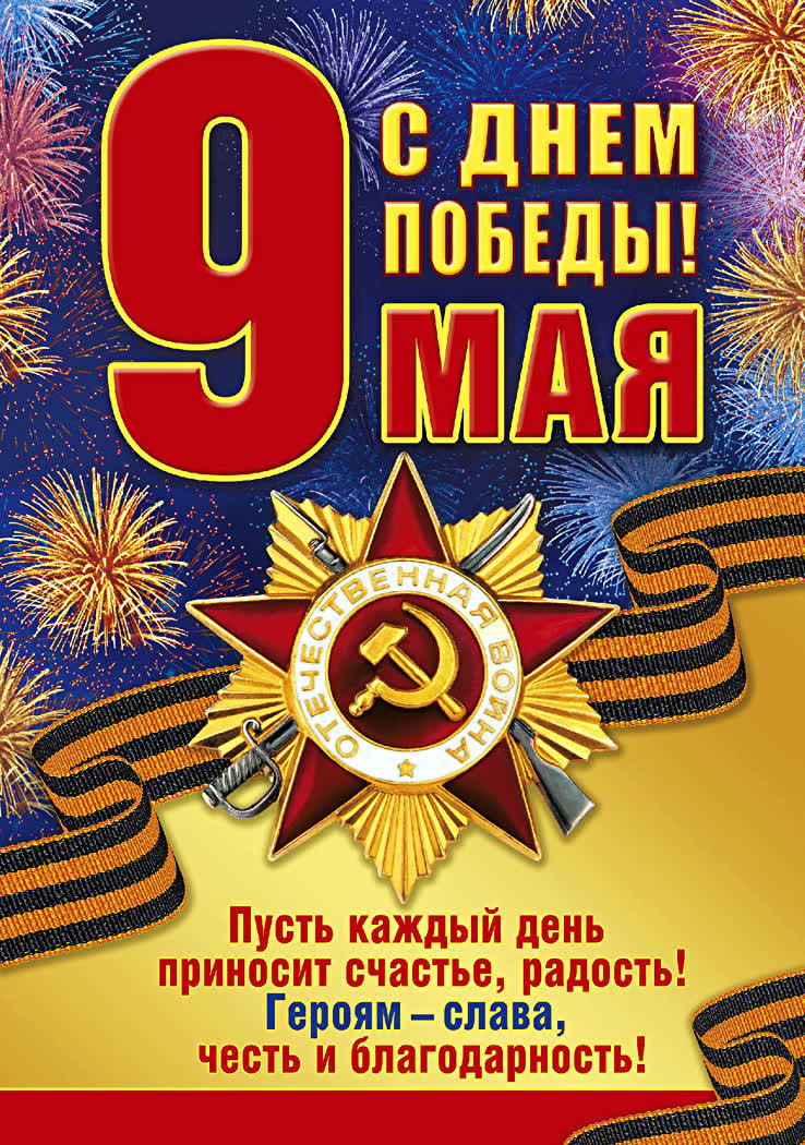 Вот Девятое мая настало, И поздравить мы всех поспешим С тем, что гнета фашистов не стало, И народ наш непобедим. Мы желаем всем думать о мире, Но и помнить всегда о войне. Улыбайтесь сегодня пошире — День Победы на нашей земле!