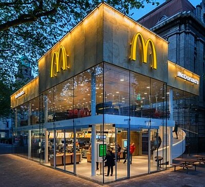 Ресторан McDonald's, предлагающий быстрое обслуживание в сфере питания «фаст-фуд», расположен по всему миру. На практике один человек не может построить собственный ресторан Макдональдс, но компания постоянно занимается поиском мест для новых ресторанов. Предприниматель может использовать только франшизу и стать оператором ресторана McDonald's на рынке быстрого питания.