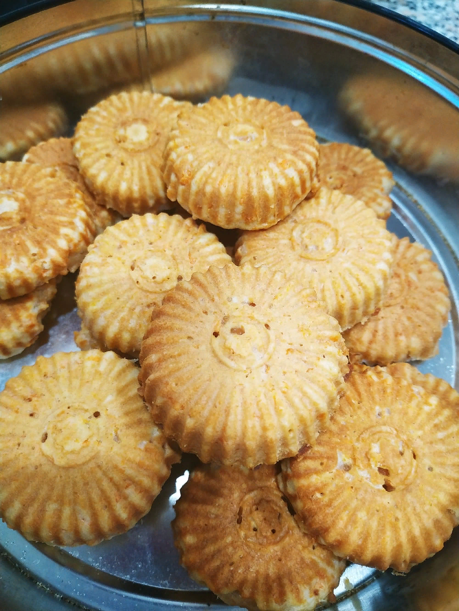 Яйца взбить с сахаром, к ним добавить масло растопленное с мёдом, вмешать жмых и добавлять муку до консистенции густой сметаны.