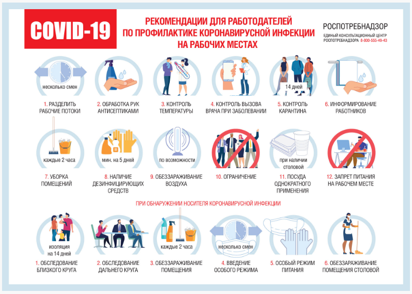 - Незамедлительно предоставлять информацию обо всех контактах заболевшего работника при поступлении запроса из Роспотребнадзора.
