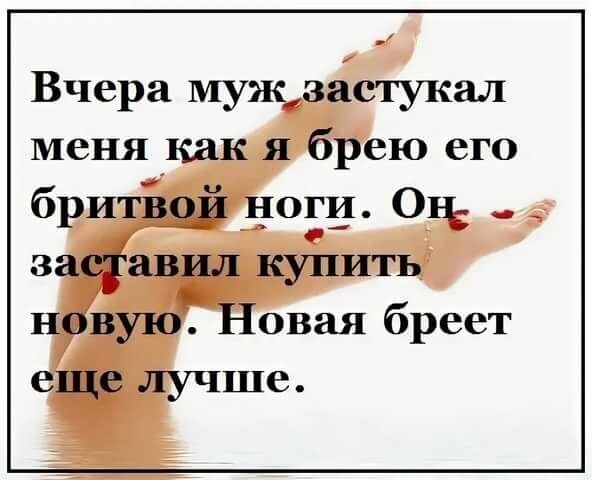 - Что ты такой хмурый? - Да вот, жена про любовницу узнала. - Понимаю. И как вы теперь? - Решили, раз уж так - то пусть любовница детей из садика забирает и на огороде картошку окучивает *** Женщина ночью будит мужа: - Толя, мне холодно! Мужик приносит теплое одеяло и накрывает ее... Через некоторое время, жена снова: - Толя, как мне жарко! Злой мужик встает и открывает форточку. Она опять: - Толя, я хочу мужчину! - Люся, ёб твою мать, где я тебе ёбаря посреди ночи найду... *** - Дорогая! Где моё полотенце? - Возьми на швабре! *** Муж гуляет с друзьями. Чтоб пораньше вернуть его домой, жена шлет СМС-сообщение: «приходи быстрей, я тебя хочу!» Проходит час, мужа нет, ответа тоже. Жена шлет второе сообщение: «Ладно, не бойся, иди домой, я уже тебя не хочу!» *** — Как закончилась вчерашняя ссора с женой? — Она ко мне приползла на коленях. — И что сказала? — Вылазь из-под кровати, я больше не злюсь. *** Муж жене за ужином: - Не пропустить ли нам по рюмочке? Жена: - Ты можешь и пропус