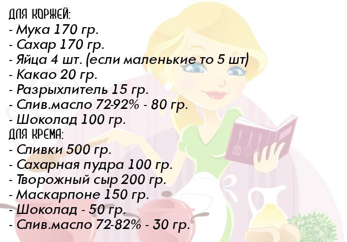 Итак, нам понадобится… Сливочное масло и поломанный на кусочки шоколад помещаем в мисочку, растапливаем на водяной бане и хорошо перемешаем. У вас должна получится жидкая масса темного цвета, она понадобится нам для придания коржам красивого шоколадного цвета. А пока шоколад и масло плавятся, разобьем в отдельную миску яйца, добавим сахар и взобьем с помощью блендера. Растопленный шоколад остужаем около минуты и вливаем к взбитым яйцам. В муку добавим какао и все вместе начинаем подсыпать к шоколадно-яичной смеси, постепенно, взбивая блендером, чтобы не было комочков. Должно получиться вот такое шоколадное, текучее тесто. Когда тесто будет готово, возьмите пергаментную бумагу. Зажмите ее на дне разборной формы. Нам нужно разделить все тесто на 4 порции, потому что у нас будет 4 коржа. На каждый корж берем по 6-7 столовых ложек теста. Выкладываем тесто на дно формы и аккуратно и равномерно разравниваем его. Запекаем при 190 градусах около 7 минут каждый корж. Готовность коржа проверяе