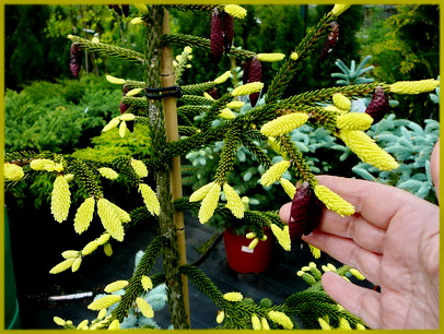 Ель Восточная – вечнозеленое хвойное дерево с кроной конической формы, иногда ее называют Кавказской из-за широкого распространения в регионе. Этот вид растет очень медленно, особенно в молодом возрасте (7-10 лет), но со временем достигает высоты до 65 м, а диаметр ствола – 2 м. Выращенная из семян ель восточная на 3-4 год жизни формирует на макушке мутовку, состоящую из нескольких направленных в стороны почек и одной верхушечной. В начале следующего сезона из них вырастают боковые ветки и единственный вертикальный побег с новым кольцом почек. Замечание! На верхушке ежегодно формируется новая мутовка с зачатками ветвей – по ним можно определить возраст дерева. Ель восточная Ауреоспиката Picea orientalis Aureospicata - один из самых декоративных сортов ели. Описание Picea orientalis Aureospicata