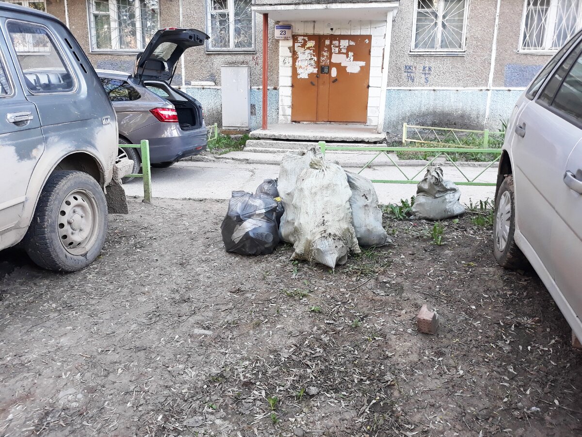 Ближайшая мусорка находится примерно в 250 метрах от нашего дома, поэтому мы решили не таскать мешки вручную, а за пару раз вывести все их на своей машине.