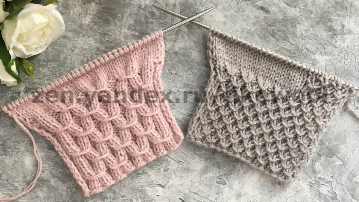 Первая резинка на основе резинки 1х1 с рапортом в 4 петли и 4 ряда, а вторая на основе резинки 2х2 с рапортом 8 петель и 8 рядов. Можно использовать для вязания таким узором всего