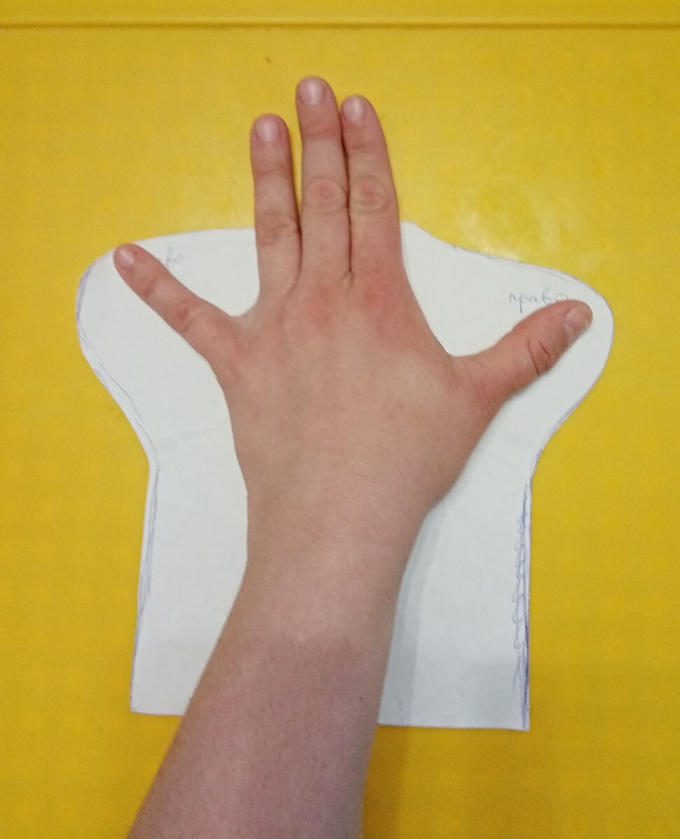 Жена сшила куклы-перчатки дочке в сад. Показываю для тех, кому нужна целая сказка по цене одной куклы. Выкройка Выкройку перчатки рисовала на глаз. Растопырила пальцы так, как если бы уже управляла куклой. Горловина равна трём пальцам, сложенным вместе. Мизинец и большой нужно максимально оттянуть в стороны — это будет длинна "ручек" куклы. Все линии соединить в "рубашку". Раскрой Тут всё просто. Приложить выкройку на ткань, сложенную вдвое, обвести. Вырезать с запасом на шов. "Сразу же наметала декоративные элементы. Сказка русская народная и "костюмы" у героев должны быть под стать. Зайцу пришила тесьму (вроде как рубаха у него), лисе — фартук, медведю — жилет", - пояснила наша мама. Опять же использовала всё, что было в запасе дома. На этом этапе затраты составили 0 рублей. Прошить Когда все заготовки будущей перчатки были сделаны, достала швейную машинку. Сначала пришила декоративные детали, затем прошила перчатку по бокам, подвернула и прострочила низ. Горловину нужно оставить