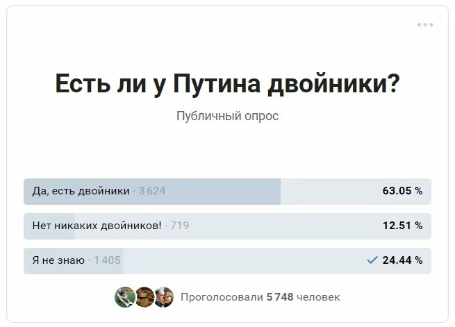 Активно, о теории "двойников Путина" стали говорить еще в 2012 году. В этой статье мы разберем все факты и доводы сторонников и противников этой теории. Мировая история показывает, что использование двойников крупных политиков - это обычная практика. И вполне вероятно, что ей активно пользуются и в России. Доказательства сторонников теории Итак, давайте посмотрим, какими фактами оперируют сторонники теории множества двойников Владимира Путина. Изменения внешности Кстати, этот момент могли заметить и вы. Владимир Путин довольно кардинально меняется, причем прямо на глазах. Взгляните на несколько фотографий: И тут могло бы быть простое объяснение - пластические операции. Действительно, для крупнейших политиков важно выглядеть достойно, ведь "по одежке встречают". Но сомнения возникают тогда, когда черты лица Путина могли меняться несколько раз за короткое время. Возможно это лишь домыслы, отражение настроения на лице, но - заставляет задуматься. Путин - повсюду Еще одним аргументом с