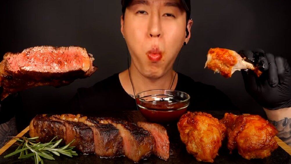 Никогда бы раньше не подумал, что жующий и чавкающий на камеру человек может вызывать аппетит. Однако посмотрев несколько видео с поедателями, я обнаружил, что это действительно работает, например, если у тебя на ужин скажем порция риса с покупной котлетой, то съесть это, смотря на парня, поедающего скажем чизбургеры с картошечкой фри и колой значительно приятнее. К примеру Zack Choi, один из моих фаворитов, парень молча поглощает аппетитный фаст фуд, при этом кстати остаётся худым Также я периодически смотрю паренька BenDeen, мне нравится, когда он например специально не ест весь день, а потом с аппетитом набрасывается на пиццу, или скажем огромный стейк, при этом что-то рассказывая, у него есть его фирменный "первый укус", и любимые аудиторией фразочки, типа mighty fine, что переводится как невероятно вкусно Есть множество других фуд(food-еда) каналов, например, Matt Stonie, здесь парень делает акцент на поедании огромного количества еды на время, например на одном кадре он в процес