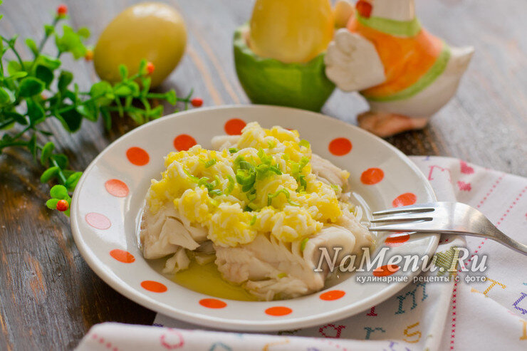 🥄Выкладываем рыбное филе из бульона на тарелку. На него выкладываем соус горкой, посыпаем зеленью по вкусу