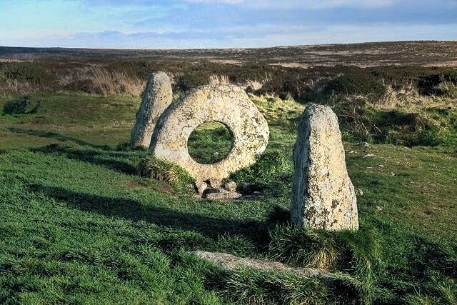 Великобритания может похвастаться богатой каменной историей. Сооружение Мен-эн-Тол представляет собой древнейшую каменную группу из стоячих камней, находящуюся на территории графства Корнуолл, на северо-западе от небольшого города Мадрона. Название переводится с языка корниша, как «дырявый камень», в связи с тем, что один камень группы является вертикальным стоящим «бубликом», диаметром почти полтора метра. В середине камня находится рукотворное отверстие, сквозь него свободно пролезет человек средней комплекции. Эти камни образовались более четырех тысяч лет тому назад. Группа представляет собой 3 вертикальных гранитных камня. В середине находится круглый камень, а спереди и сзади два камня вертикально стоящие, высотой 1,2 метра. Официальной версии о предназначении данной каменной группы не существует. Большинство специалистов склонны относить ее к останкам гробницы эпохи позднего неолита, потому что в те времена ходы погребальных камер выкладывались трубчатыми камнями. Прочие археол
