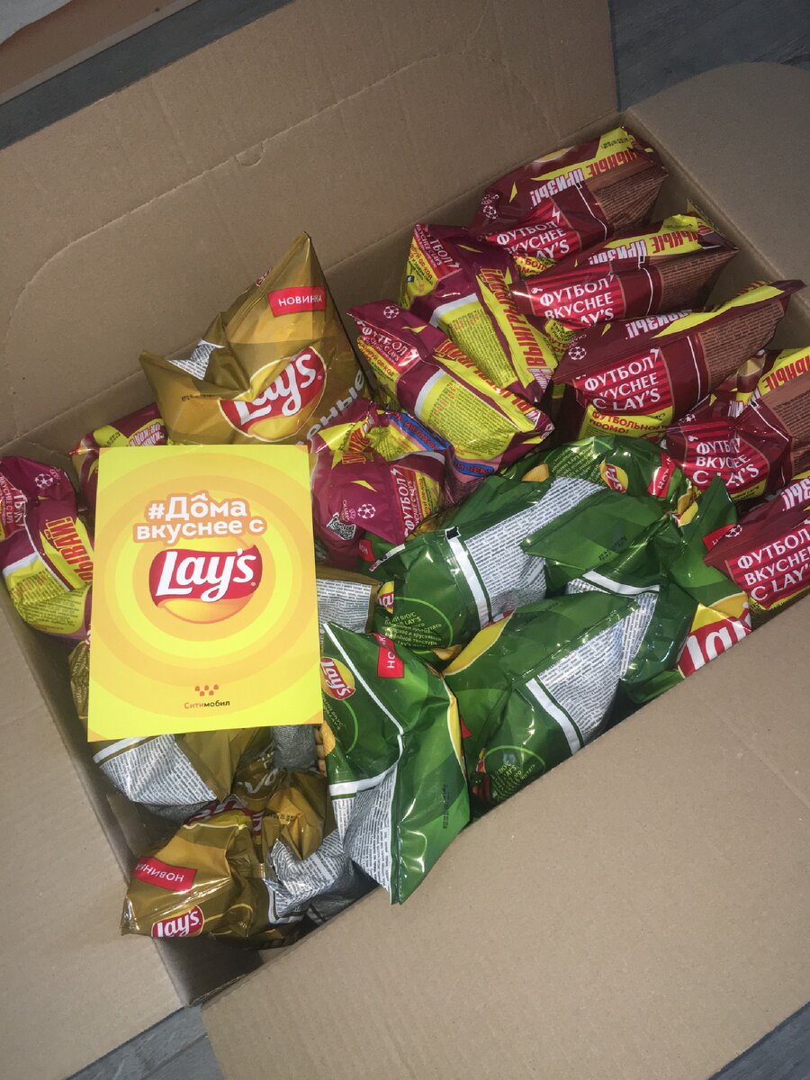 Сейчас лейс проводит акцию для тех, кто сидит дома. Коробку чипс до дома бесплатно. На такси к подъезду. Самый подробный вариант, который ТОЧНО пройдёт. И вы получите коробку чипс,для этого не надо будет даже из дома выходить. Лично я была в шоке от условий! Это вы можете найти на их официальном аккаунте в инстаграмме. Условия таковы, что надо выложить фото-публикацию, как вы сидите дома. И поставить хештеги #домавкуснеесlays #сижудома #домалучше Обычно, они пишут вам сами, но не всегда замечают, лучше самим отправить им в Директ свою публикацию, с выполненными условиями. Акция, должна быть для всех больших городов, где есть компания ситимобил, потому что именно их партнерская компания доставляет чипсы вам до дома! Удачи вам с получением🙂