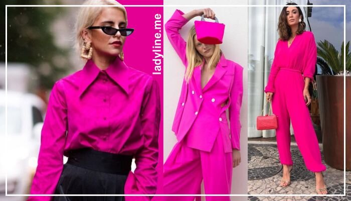 Ниже представлены идеи, с помощью которых можно без труда преобразить и сделать женственней и элегантней любой стилистический аутфит. Розовый пиджак Стильный и универсальный пиджак насыщенного розового цвета можно считать той самой вещью, благодаря которой образ заиграет новыми красками и станет более женственным. Розовый пиджак идеально сочетается, как с однотонными, так и цветными вещами в одном образе. Total pink Total pink look — это идеальный вариант женственного образа. Гармоничное сочетание трендового розового верха и низа создают яркую и сексуальную композицию, которая точно произведет неизгладимое впечатление на противоположный пол. Образы в розовом цвете молодят зрелых дам и отлично освежают их внешность. Розовый костюм Современным дамам, которым не хватает женственности, следует присмотреться к трендовым брючным костюмам розовых цветов. Розовый комбинезон Правильно выбранный фасон розового комбинезона способен выигрышно подчеркнуть все достоинства фигуры современной леди, а