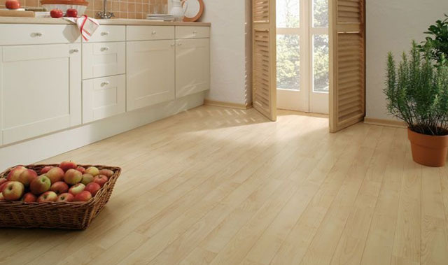 Для кухни данное покрытие нетипично, но это ни в коем случае не плохой вариант. Если правильно подобрать ламинат для кухни, он прослужит вам верой и правдой и не одно десятилетие. 1.Класс и водостойкость Совет! Ламинат для кухни должен быть 32 класса как минимум, а лучше выше. Что касается водостойкости (не путать с влагостойкостью), то на кухне этот фактор определенно не помешает. Но водостойкий ламинат может напугать вас своей стоимостью. Как альтернативу можете использовать специальный водооталкивающий герметик для швов. 2.Экологичность Как и в случае спальни, оптимальным вариантом является маркировка Е1. 3.Подложка Для кухни не особо важна тишина, здесь опять же нужно учесть повышенную влажность. Подойдет пенополистирольная или пенополиэтиленовая подложка, но ни в коем случае не пробковая. 4.Цвет Что касается цвета то для небольшой кухни лучше использовать светлые тона. Также учтите, что если у вас много свободного пространства, покупайте покрытие, которое выглядит дорого. В любо
