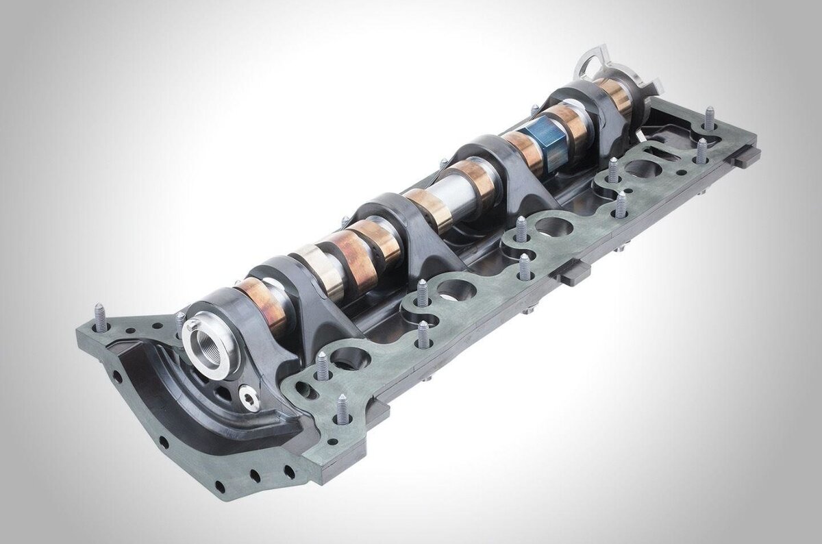 Сотрудники Фраунхоферского института химических технологий (Fraunhofer Institute for Chemical Technology ICT) разработали пластиковый модуль распределительного вала. Авторы проекта надеются, что подобные элементы позволят снизить массу и стоимость автомобилей, а также упростят сборку двигателей. Кроме того, срок службы термореактивных полимерных литьевых форм значительно выше (около 500 000 циклов), чем у алюминиевых пресс-форм высокого давления. А вот сборку упростят благодаря монолитному дизайну со встроенными подшипниками. Модуль уже прошел 600 часов испытаний, которые подтвердили его пригодность для установки в двигатели внутреннего сгорания. Композит выдерживает высокие нагрузки, не разрушается, а ещё хорошо поглощает шум и вибрации. Вдобавок низкая масса способствует снижению выбросов углекислого газа.