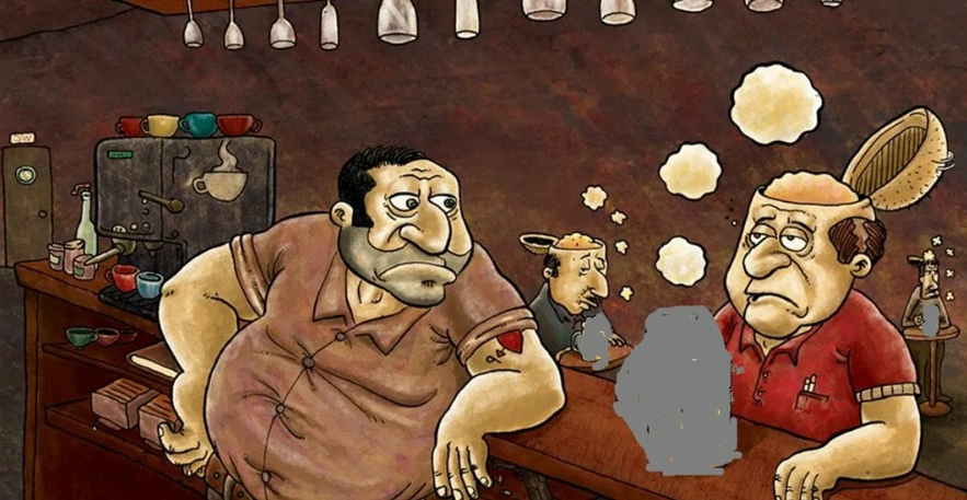 Анекдот: Приходит мужик в кафе, подходит к бармену что то заказывает, видит на баре стакан с деньгами стоит