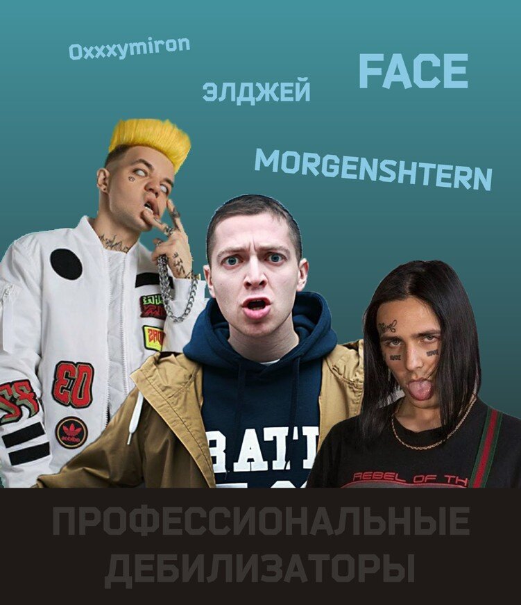 Удивительная вещь - в нашей стране, где есть огромное количество талантливых людей, на эстраде доминируют натуральные выродки. И речь не о киркоровых и бузовых, что вы! Это божьи ангелы по сравнению с тем, ЧТО сейчас набирает популярность. Так называемый русский реп сейчас безостановочно крутят на всех радио-, телеканалах и в интернете.