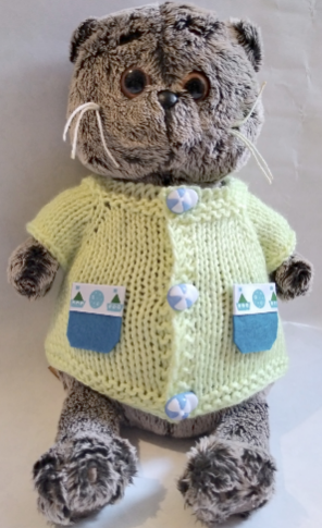 Для пузика Басика дополнительно в каждом последующем лицевом ряду (5 раз) добавляем по 4 накида ( по 1 с каждой стороны от 2 скрещенных под рукавами петлями).
