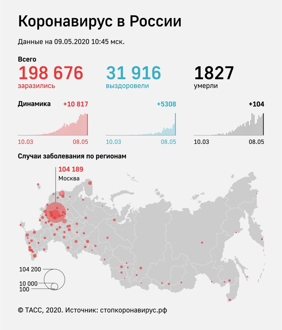Россия вышла в топ 5 стран по числу заболевших инфекцией. Есть ли смысл продлевать карантин до лета? Инфекция активно продолжает развиваться и с каждым днём количество заболевших растёт в арифметической прогрессии. Каждый день прибавляется по 10 тыс заболевших. Разве так может продолжаться? В Москве режим самоизоляции продлён до лета. Со 100% вероятностью смогу сказать, что режим самоизоляции будет продлён. В Москве Сергей Собянин разрешил возобновить работу только строителям и промышленным предприятиям. Но за это придется заплатить — мэр обязал работающие компании каждые две недели тестировать на COVID-19 по 10% своих сотрудников, и это может обойтись предпринимателям в сотни миллионов рублей. Наша страна находится под огромной угрозой. И для того чтобы её сохранить, нужно срочно вводить режим ЧС. Я вас уверяю в этом. В конце апреля Путин в третий раз продлил нерабочие дни и поручил правительству к пятому мая подготовить план выхода из карантина. 6 мая глава Роспотребнадзора Анна П