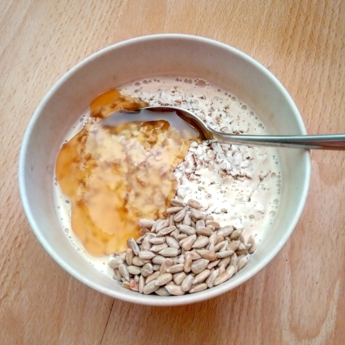 Здоровый образ жизни неразрывно связан с правильным питанием. Исследовав массу рецептов и опробовав их на себе, могу смело рекомендовать гречку, как универсальный продукт, подходящий большинству людей вставших на путь здорового питания. Вот один из способов употребления, которым я пользуюсь несколько раз в неделю. Как правило, это завтрак и готовлю я его с вечера, так как блюдо должно настояться около 8 часов. Первым делом отмеряем 100 грамм сухой гречки, что составляет 343 ккал. Заливаем ее 100 граммами 1%ного кефира, а это всего 37 ккал и ставим в холодильник примерно на 8 часов. В готовое блюдо можно добавить ложку меда - примерно 30 ккал и что-нибудь по своему вкусу. Я добавляю разные семена. Приятного аппетита! Будьте здоровы и счастливы! Подписывайтесь на мой канал, ставьте лайки и пишите комментарии! Всегда на связи и готов к общению.