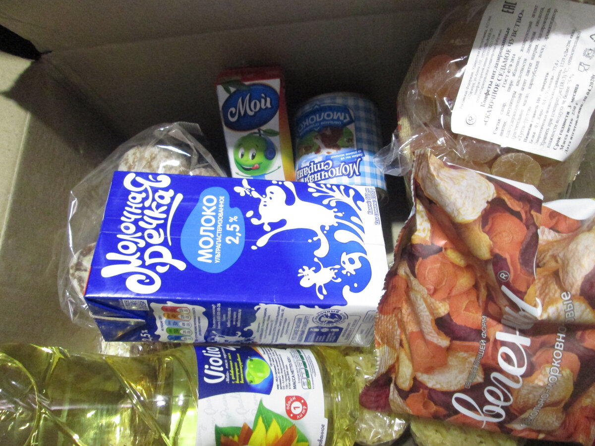 с чего всё началось... нам в Удмуртии первый раз выдали детям наборы я писала и был скандал. ну там не было ни консерв ни сгущенки, и кто то писал про червей в крупе. Глава республики Бречалов пообещал разобраться. Идём получать и смотреть следуещее: всё сложено в коробочку открываем смотрим приятно. в этот раз и тушенка 2 шт. и сгущенка и пряники и молоко. месяц жить можно. и чипсы с макаронами. Ну исправились. могут ведь когда пнут.